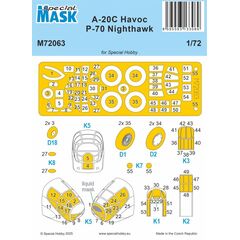 Vorgeschnittene Lackiermasken für die Klarsichtteile sowie die Fahrwerksräder des Special Hobby A-20C Havoc Bausatzes, einschließlich der britischen Variante Boston Mk.IIIA und auch des Nachtjägers P-70 Nighthawk.