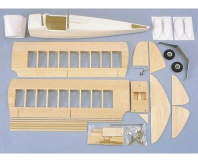 Unser vorbildähnliches Modell hat die gleichen Flugeigenschaften, ist durch den GfK-Rumpf mit eingebautem Baldachin, die in Rippenbauweise rohbaufertig gelieferte Tragfläche sowie den anderen in teilweise hohem oder bereits fertigem Vorfertigungsgrad mitgelieferten Zubehörteile aus Holz, Kunststoff und Metall schnell und problemlos zu bauen und auch für Modellbau-Einsteiger empfehlenswert. Der Modellbausatz enthält: Bauplan mit ausführlicher Bauanleitung, GfK-Rumpf weiß mit eingebautem Baldachin, ABS-Motorhaube und -Radverkleidungen, Alu-Fahrwerk, rohbaufertige Tragflächen und Leitwerke, Räder und Zubehör.
