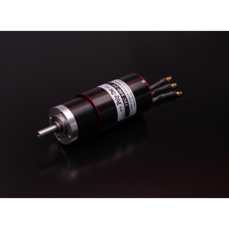 Der Poly-Tec 500-30 ist ein 2-poliger hochdrehender Innenläufer, welcher mit einem 32mm 6,1:1 Maxon Getriebe ausgerüstet ist. Durch seine hohe Drehzahl von 3000Umin/V in Verbindung mit dem 6,1:1 Getriebe ist er perfekt für 4S LiPo mit einer 17x8 Klappluftschraube für schwere F3J und Thermiksegler mit 3-4kg geeignet. Er erzeugt in dieser Konfiguration bis zu 800 Watt und zieht große Segler wie z.B. den Kult oder Elektromaster und vergleichbare Segler mit nur 4S LiPo mit bis zu 3,5m Spannweite zügig an die Sichtgrenze.