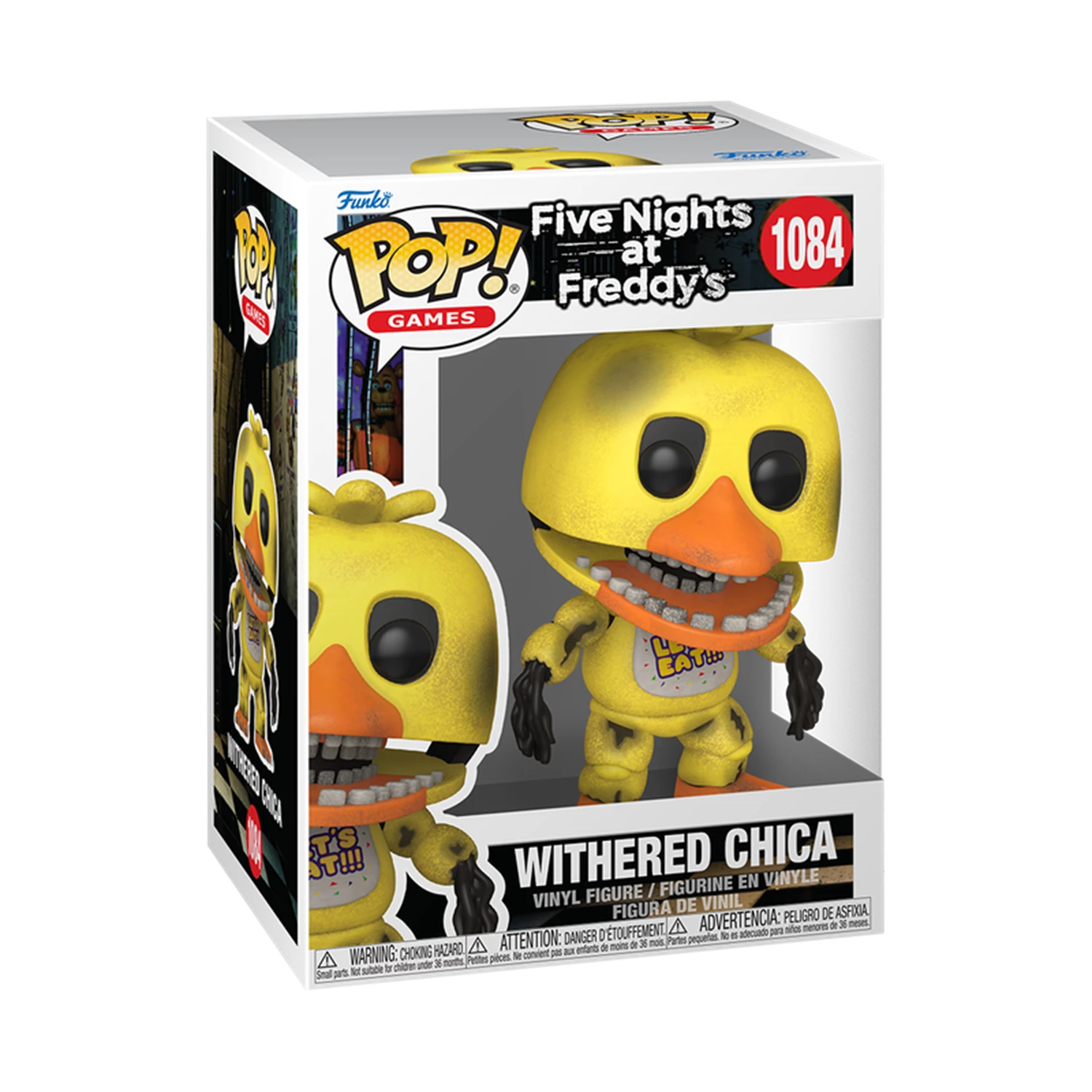 Verleihen Sie Ihrer Sammlung mit POP! Withered Chica einen Schreckmoment! Vervollständigen Sie Ihre Five Nights at Freddy's-Sammlung, indem Sie sich POP! Withered Chica nähern, bevor sich diese Animatronik bewegt! Die Vinylfigur ist ca. 10,4 cm groß.