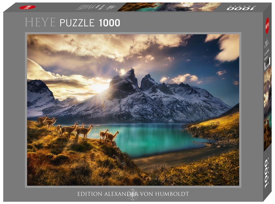 Guanakos gehören zu den wildlebenden Lamas und sind in Südamerika zuhause. Man findet sie in Höhen bis 4000 Metern - und auf diesem stimmungsvollen Puzzle!