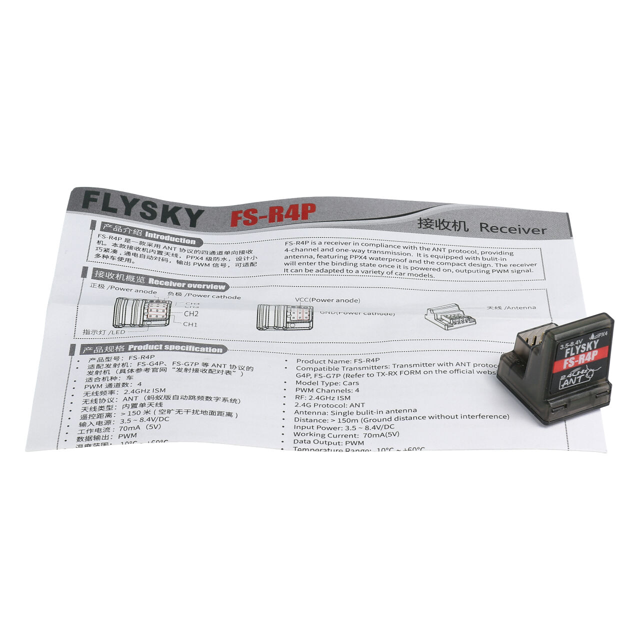Der R4P-Empfänger ist der ideale Partner bei der Verwendung einer Flysky Fernsteuerung und ist speziell für die Installation und Ausgabe von PWM-Signalen ausgelegt. Damit wird er von allen ANT-fähigen Sendern unterstützt.