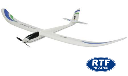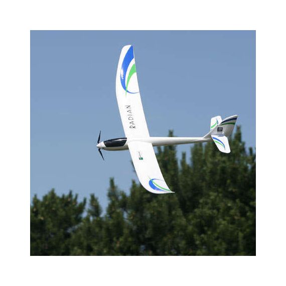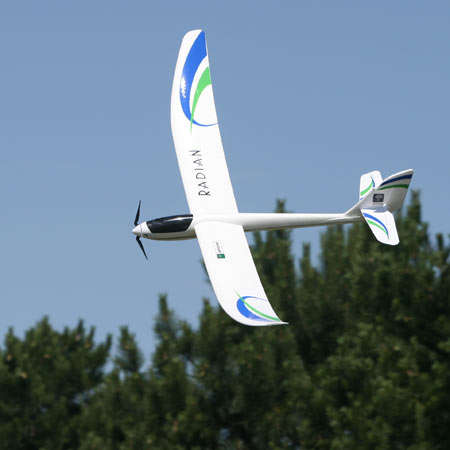 Die Radian verfügt über einen Brushless Antrieb, der diesen Segler mit beachtlicher Steigleistung auf sichere Höhe bringt. Des weiteren wird die RTF Version komplett mit LiPo Akku, Ladegerät, Senderbatterien und der neuen Spektrum DX5e 2,4 GHz DSM2 Full Range Anlage ausgeliefert. Diese bietet den