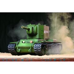 Der TAMIYA-Bausatz des russischen KV-2, benannt nach dem damaligen Verteidigungsminister Kliment Voroshilov, ist die Weiterentwicklung des KV-1. Aufgrund der aussergewöhnlichen Turmform, musste die Panzerung nochmals verstärkt werden. Der 57 t schwere Panzer, ehrfurchtsvoll auch Gigant und Monster genannt, hatte eine stark eingeschränkte Mobilität und erreichte noch nichtmals die 30 km/h-Marke.