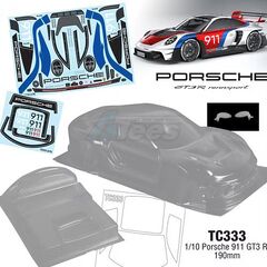 1/10 Porsche 911 GT3 R WB 258mm Width 190mm Clear Lexan Body W/Rear Wing With Light Buckles and Mirrors Incl: 911 GT3 Decal Sheet Window Mask