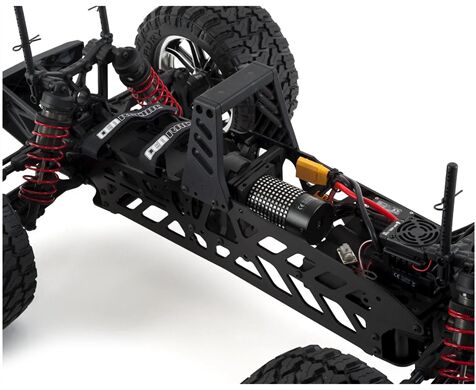 Entfesseln Sie den ultimativen Basher. Als RTR Monster Truck im Massstab 1:7 stellt der REEPER eine wahrliche Grösse dar. Ein durchdachter und effizienter Aufbau machen diesen Monster Truck einmalig. Kraftübertragung durch hochwertigste Bauteile, sowie verbaute Qualitätskomponenten lassen den REEPER jedes Gelände beherrschen. Beim Bashen, Jumpen und Racen fühlt sich der REEPER wohl. Die Big Bore Stossdämpfer mit unterschiedlich einstellbaren Anstellwinkeln und die extra grossen 7,5 Monsterreifen sorgen für perfekten Grip und ein ausgewogenes Fahrverhalten. Als RTR Modell sind bereits alle Montagearbeiten inklusive fertiger Karosserie werksseitig ausgeführt. Die Serienausführung ist für 4-6s LiPo Akkus ausgelegt.