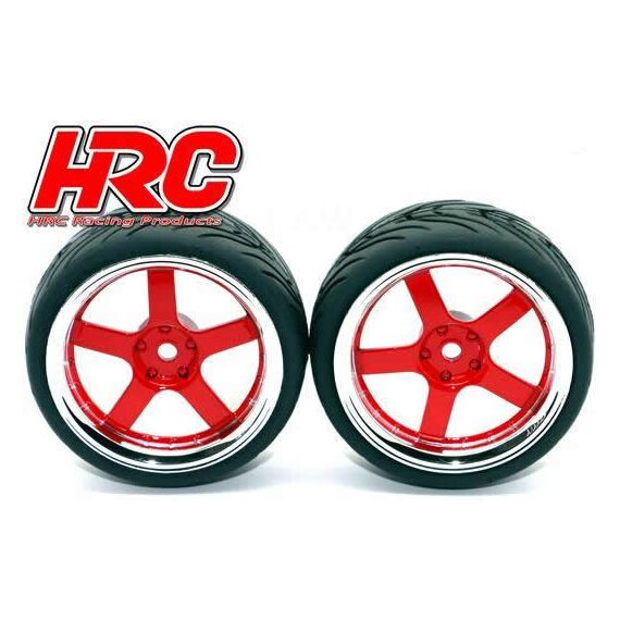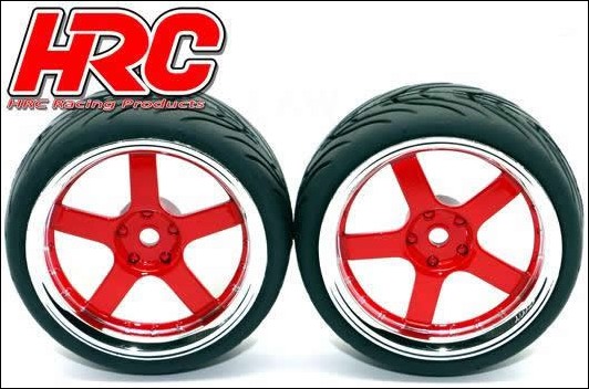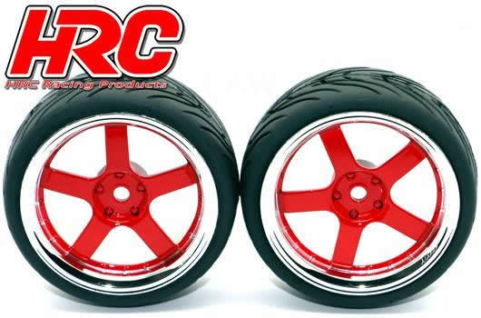 Reifen - 1/10 Touring - montiert - 5-Stars Rot/Chrome Felgen - 12mm hex - HRC Hi