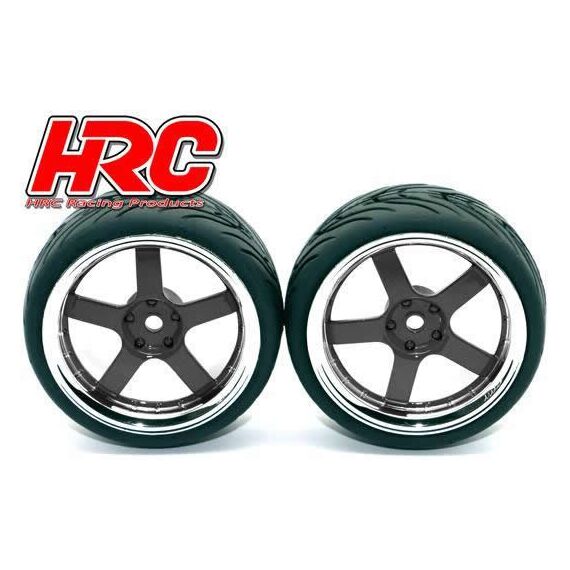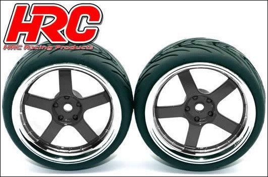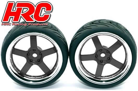 Reifen - 1/10 Touring - montiert - 5-Stars Schwarz/Chrome Felgen - 12mm hex - HR