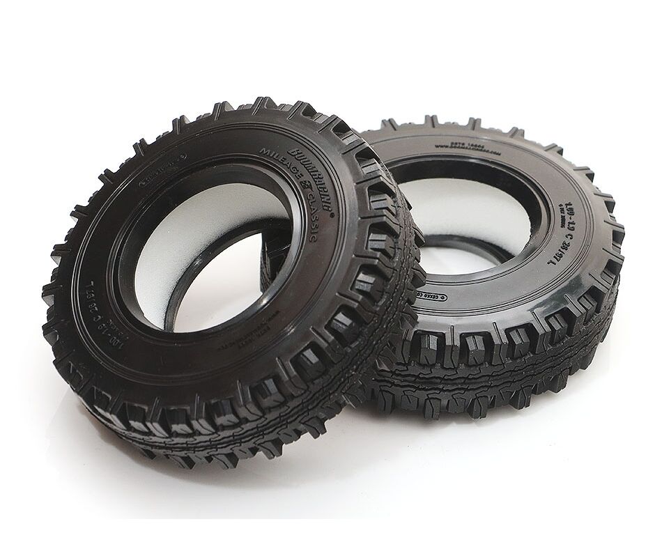 The Mileage Classic Scale Truck Tire is a realistic RC tire. It is sized at 1.9 x 3.82 x 1.0 inch (97 x 26 mm) in super-soft Gekko rubber compound with a new open-cell foam insert.