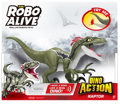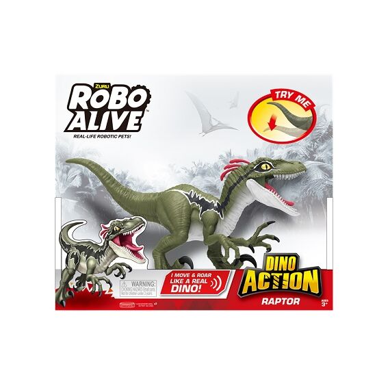 Dynamische Bewegung des Schwanzes, die den Hals nach unten auslöst, die Kiefer öffnen sich und die Krallen bewegen sich. Brüllen wie ein echter Dinosaurier!