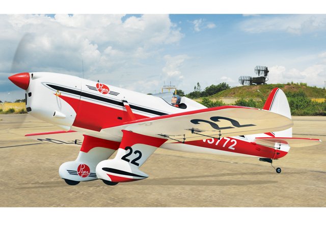 Die Ryan STA (=Sport Trainer Serie A) basiert auf einer Konstruktion aus dem Jahr 1936 von T. Claude Ryan, aus dessen Feder auch die weltberühmte "Spirit of St. Louis" stammt. Es handelt sich bei der Ryan STA nicht, wie häufig angenommen, um ein Rennflugzeug sondern um ein Sportflugzeug. Das Original ist dabei mit 95 bzw. 125 PS nicht besonders üppig motorisiert. Dennoch überzeugt die Ryan STA durch ihr schnittiges Aussehen und nicht zuletzt durch die guten Kunstflugeigenschaften. Unser Modell ist ausgelegt für Elektro- oder Verbrennungsmotoren und stellt eine absolute Bereicherung am oft sehr langweiligen Modellflughimmel dar. Das Modell ist mit unserem Benzinmotor NGH GT-25 optimal motorisiert.