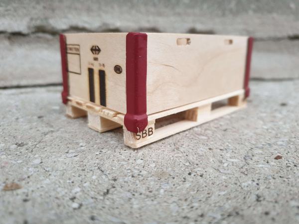 SBB Euro Palette mit Aufsatzrahmen. Die Ecken sind aus Messing Feinguss und die Beschriftung ist eingebrannt.