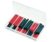 Schrumpfschlauchset 80-tlg. in praktischer Aufbewahrungsbox, Polyolefin, mit Innenkleber, Schrumpfschlauchlänge 76 mm in verschiedenen Durchmessern, Schrumpfrate 3:1, Schrumpftemperatur 70 - 120°C, Temperaturbereich zur Verwendung -45 bis + 125°C.