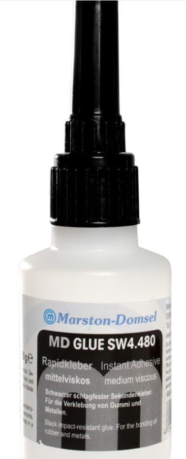 Black impact-resistant instant adhesive. For bonding rubber and metals.