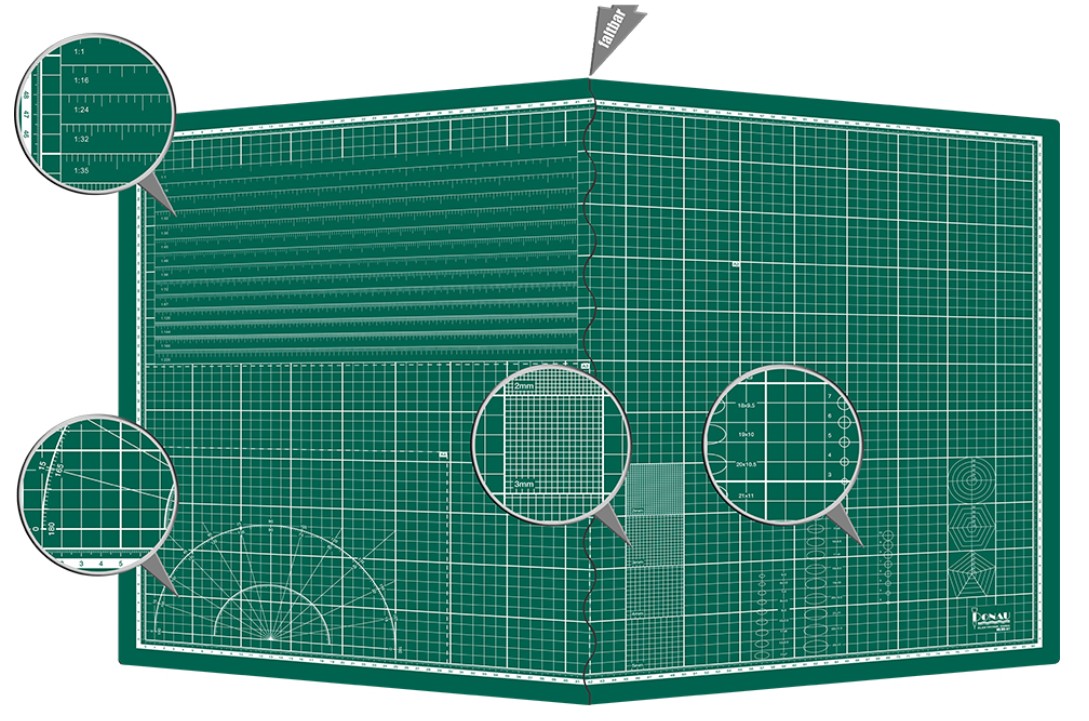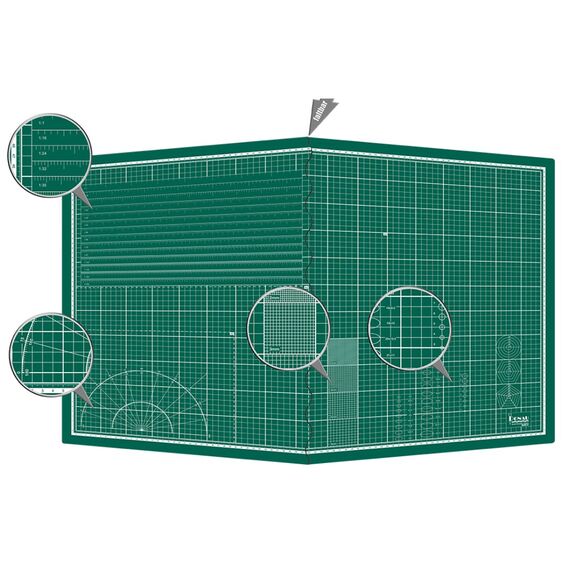 Schneidematte faltbar und dadurch leichter transportierbar.