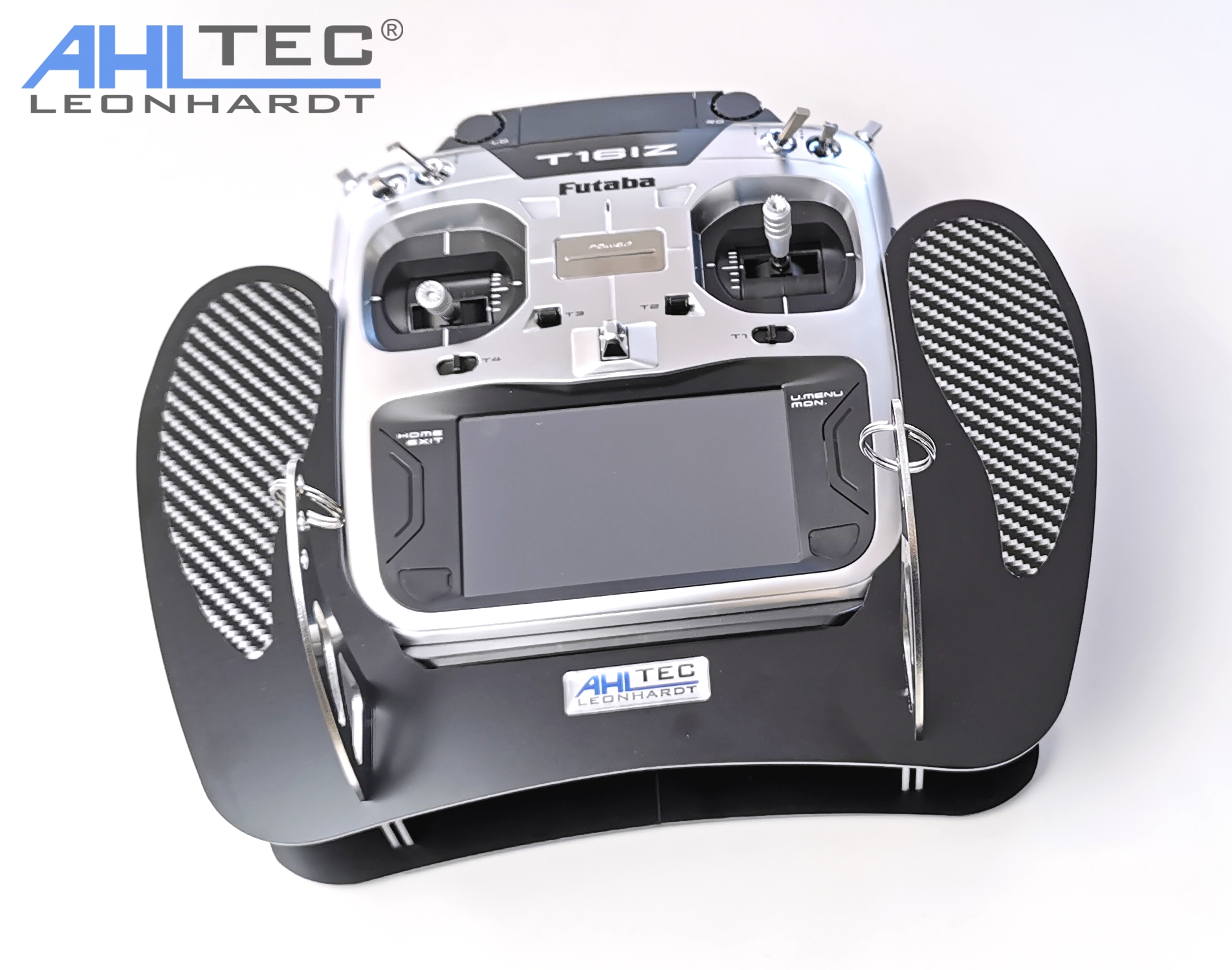 Alternativ bieten wir ihnen klappbare Senderpultbügel, welche im geklappten Zustand die Höhe des Senderpultes um 5 cm verringern.