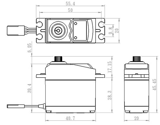 Grösse (mm): 40.7 x 20.0 x 39.4 Gewicht(g): 42.0 Lager: 2BB Getriebe: Industrial Plastic Gehäuse: Plastic Bei 6.0 Volt: Stellgeschwindigkeit sec/60°: 0.13 Stellkraft kg-cm: 6.5