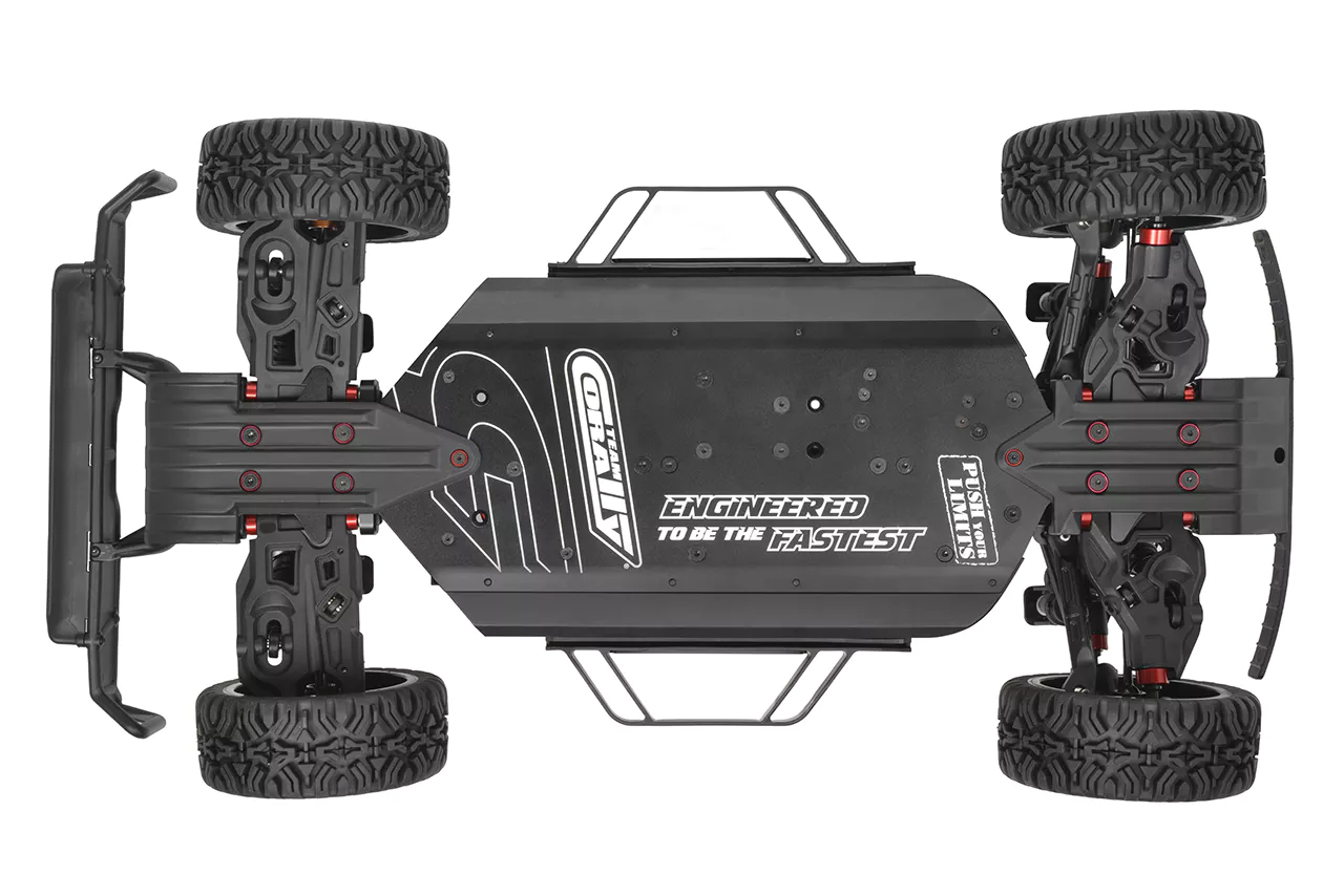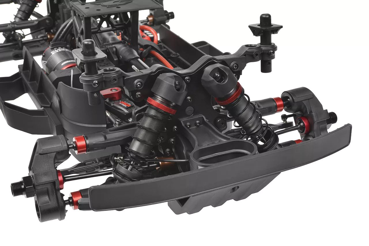 Großvolumige, CNC-gedrehte Aluminium-Stoßdämpfer mit Gewinde sind serienmäßig verbaut und sorgen für eine außergewöhnliche Dämpfung und ein gleichmäßiges Fahrverhalten auf allen Oberflächen. Dank einstellbarer Federn und Dämpferöle kannst du das Fahrwerk individuell abstimmen – für High-Speed-Runs, Kurvenfahrten oder harte Landungen. So hast du jederzeit die volle Kontrolle.