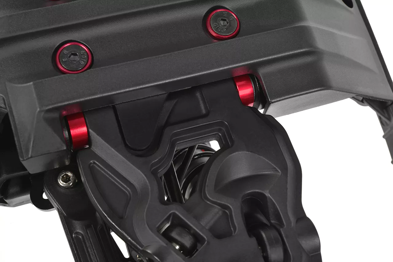 Großvolumige, CNC-gedrehte Aluminium-Stoßdämpfer mit Gewinde sind serienmäßig verbaut und sorgen für eine außergewöhnliche Dämpfung und ein gleichmäßiges Fahrverhalten auf allen Oberflächen. Dank einstellbarer Federn und Dämpferöle kannst du das Fahrwerk individuell abstimmen – für High-Speed-Runs, Kurvenfahrten oder harte Landungen. So hast du jederzeit die volle Kontrolle.