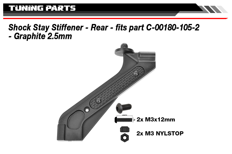 Shock Stay Stiffener - Rear - fits part C-00180-105 - Graphite 2.5mm - 2 pcs