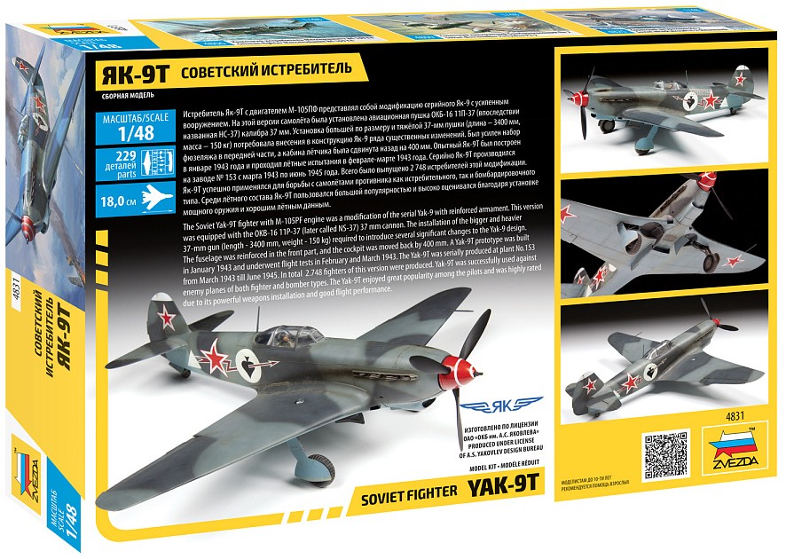 The Yak-9T fighter with the M-105PF engine was a modification of the serial Yak-9 with improved armament. This version of the aircraft was equipped with an OKB-16 11P-37 aircraft gun (later called NS-37) of 37 mm caliber. The installation of a larger and heavier 37 mm gun (length - 3400 mm, weight - 150 kg) required a number of significant changes in the design of the Yak-9. The fuselage in the forward part was reinforced and the cockpit was moved back by 400 mm. The experimental Yak-9T was built in January 1943 and underwent flight tests in February-March 1943. The Yak-9T was mass-produced at Plant No. 153 from March 1943 to June 1945. A total of 2,748 fighters of this modification were produced. The Yak9T was successfully used to combat enemy aircraft of both fighter and bomber types.