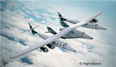 WhiteKnightTwo und SpaceShipTwo des Raumfahrtunternehmens Virgin Galactic bildengemeinsam das weltweit erste kommerzielle Raumflugsystem für Weltraumtouristen: beide Maschinen sind gebaut und fliegen.