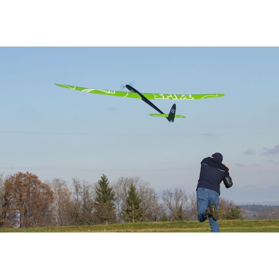 Der Spike überzeugt durch seinen geringen Energiebedarf. Er ist optimiert für LiPo-Akkus mit 3S oder 4S und einem entsprechenden Motor mit ca. 790 kV und Klappluftschraube. (Die passenden Antriebskomponenten für den 4S-Betrieb sind separat als Zubehör erhältlich).