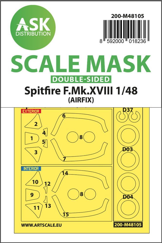 Spitfire F.Mk.XVIII double-sided mask self-adhesive, pre-cutted for Airfix