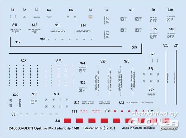 Spitfire Mk.V stencils 1/48 for EDUARD