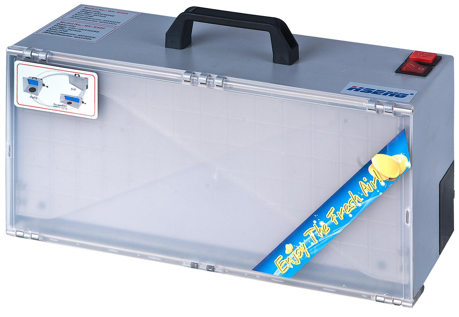 Es können auch zwei Geräte gekoppelt werden, somit wird die Lackierfläche verdoppelt. Mit kleiner elektrischer Leistung wird eine große Luftströmung erzeugt, der Filter mit hoher Dichte filtert die meisten Farbdämpfe und Feuchtigkeit aus. Ausgestattet mit einem international einsetzbaren Netzteil, verwendbar von 110 – 240 V/50 oder 60 Hz. Gerätedaten: Motor: DC 12V, 1,6 A Eingangsleistung: AC 100 – 240 V, 50/60 Hz Luftdurchlass: 4 m³/Minute Geräuschpegel: 45 dB Abmessungen aufgebaut: 42 x 48 x 34 cm Abmessungen gefaltet: 42 x 15 x 25 cm Gewicht: 3,5 kg