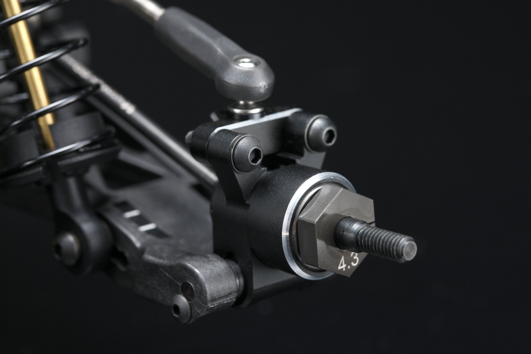 ■ X30 Titanium-Coated Shock Shaft ■ Aluminum Shock Cap Ball ■ Aluminum Shock Mount Nut