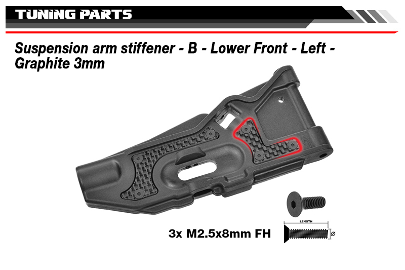 Suspension arm stiffener - B - Lower Front - Right - Graphite 3mm - 1 pc