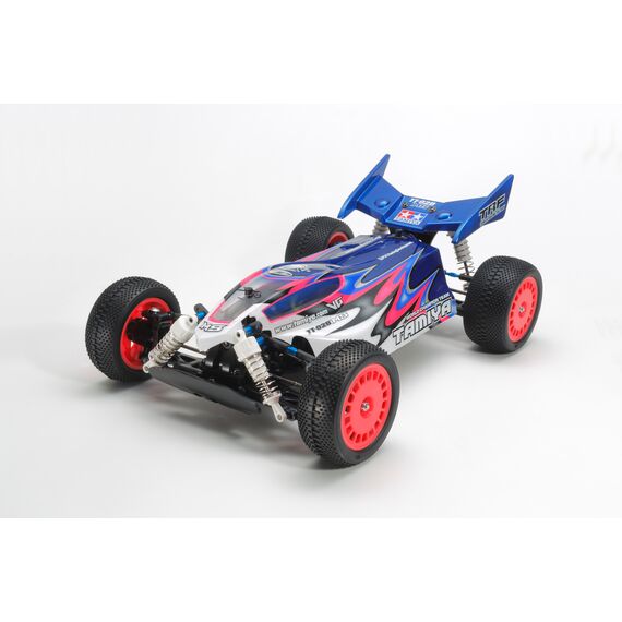 Das Kürzel MS verrät , dass bei der Entwicklung kein Geringerer als TRF Werksfahrer Maezumi Satoshi Pate gestanden hat. Der beigelegte Stickersheet im TRF MS-Design dient dabei zur Kundgebung der Tuning-Kur auf der enthaltenen Dual Ridge-Karrosserie. Das Ergebnis ist ein fantastisch performender Racebuggy mit obendrein supercoolem Look.