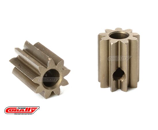 High-performance 9T tooth pinion gear, manufactured from special steel for toughness and durability with precise tolerances and assures unparalleled concentricity. Created on a special gear machine, all pinions feature ultra-precise tooth shaping and ultra-true running for vibration-free operation. Each pinion is marked with the tooth number for easy and quick identification.
