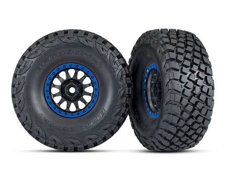 Tires and wheels, assembled, glued (M ethod Racing wheels, black with blue beadl