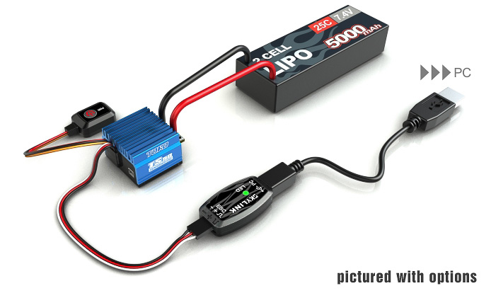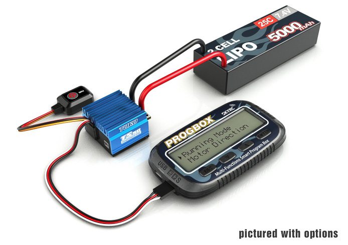Der Regler verfügt über ein gut abstimmbares Gas- & Brems Management bei dem noch eine Menge Features einstellbar sind wie z.B. die Gas-Kurve, Auto-Bremse oder die Bremskurve. Wie üblich bietet auch der Toro TS50 Regler branchenführende die Möglichkeit Software und Firmware einfach über das SkyLink System via PC, die Program Box oder das Smartphone zu aktualisieren und einzustellen. Eigenschaften: