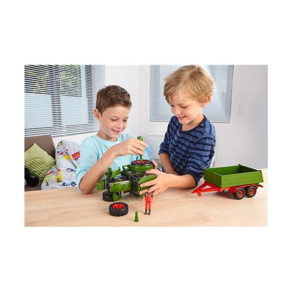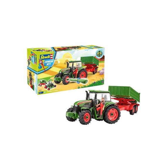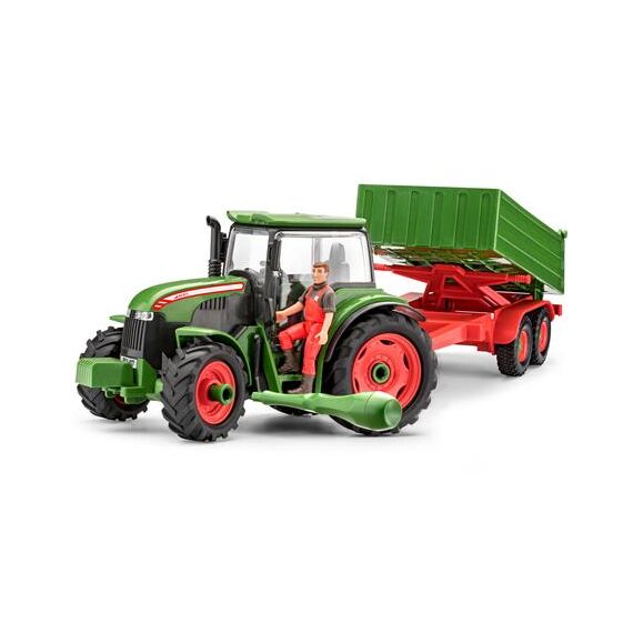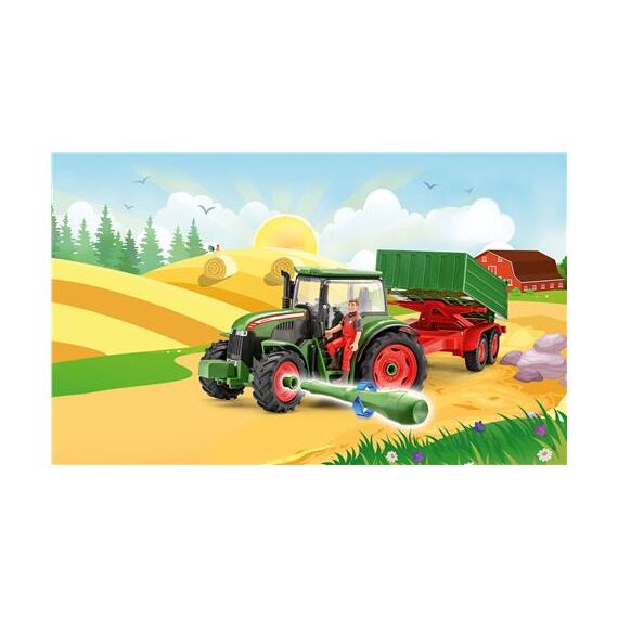 Das ideale Gespann für die Feldarbeit! Heuballen, Stroh, Silage - auf dem Bauernhof gibt es viel zu transportieren. Kein Problem, wenn du einen Anhänger wie diesen hast. Und mit dem Traktor hast du gleich die richtige Zugmaschine dazu. Stecke den Junior Kit-Schraubendreher durch das Kabinendach in das Lenkrad und du kannst dein Traktoren-Gespann sogar richtig lenken. Bei der Arbeit steht dir außerdem der Landwirt zur Seite. Die Figur ist vollbeweglich und kann im Traktor sitzend oder stehend ihre Arbeit machen.Kleine Landwirte aber 4 Jahren können Traktor und Anhänger ganz leicht selbst zusammenbauen. Kindgerecht und ohne Kraftaufwand. Die Farbige leicht verständliche Bauanleitung führt dabei Schritt für Schritt zum Ziel.