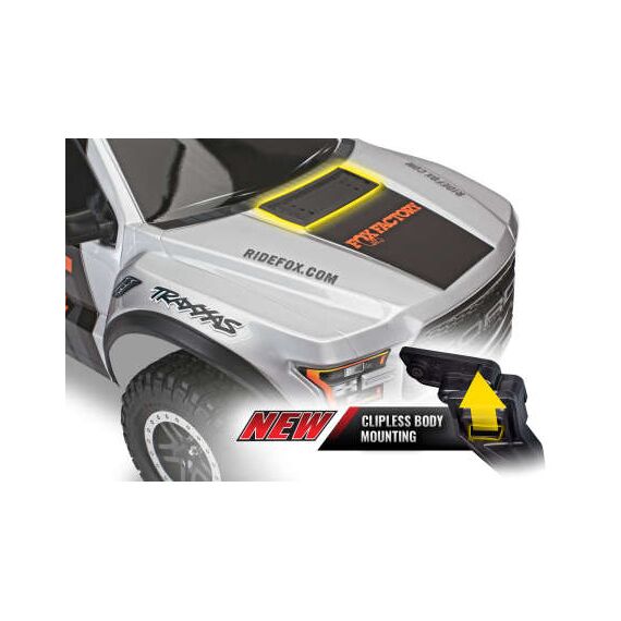 Der neue Slash Ford Raptor ist voller Details die ihn wie den echten Ford Pick up Truck im Maßstab 1:10 aussehen lassen. Der Kühler Grill und die Front Stoßstange wurden mit Verbundkunststoff in die Lexan-Karosserie integriert. Lüftungsschlitze in der Motorhaube und Rückspiegel vollenden die perfekte Nachbildung!