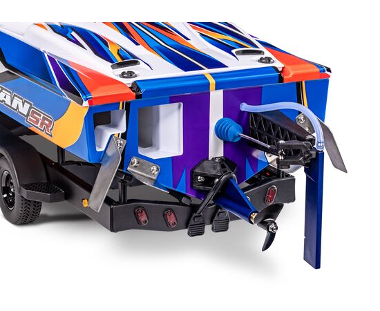 Spartan’s rudder and drive strut are machined from tough 6000-series aluminum for maximum strength and then anodized vivid blue for that unmistakable Traxxas look. The drive strut uses special bushings for corrosion-free performance and features an oiling hole for easy maintenance.