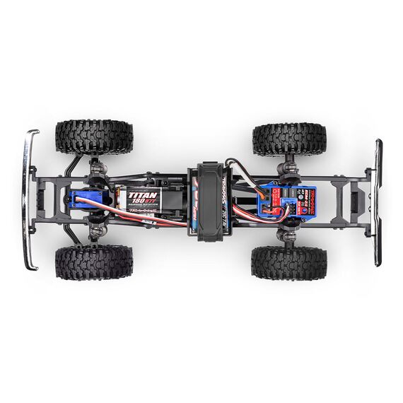 Details im Überblick: • Detaillierte lizenzierte ABS-Karosserie • Splintenlose Karosseriebefestigung • LED-Scheinwerfer • Werkseitig installiertes Long Arm Lift Kit (+35% Bodenfreiheit) • Heavy-Duty Stahl-Rahmenschienen • Unglaublich kleiner 45° Wenderadius • 4-Link Aufhängung vorne & hinten • Sperrdifferential vorne & hinten • Heavy-Duty Mittelantriebswelle • GTM™ Öldruck-Stoßdämpfer • Mickey Thompson® Baja Pro™ XS 2.4 Reifen auf 1.0 Chrom-Felgen • Hex-Felgenadapter 7mm • Niedriger Batterieschwerpunkt • Wasserdichte Elektronik • TQ™ 2,4GHz 2-Kanal Fernsteuerung • All-In-One ECM-2.5™ Fahrtenregler (inkl. TQ-Empfänger & LED Pro-Scale® Modul*) • Drei einstellbare Fahrmodi • Leistungsstarker Titan® 180 87T Motor • 2s LiPo 750mAh 7.4V 20C und iD® (über 1h Fahrzeit) • 2-Amp USB iD®-Schnellladegerät • Heavy-Duty 2065T Lenkservo • Chrom Kühlergrill und Stoßfänger • Umfangreiches Tuning-Sortiment erhältlich