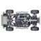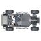 Merkmale: Länge: 694 mm (27,32 Zoll) / Vordere Spur: 345 mm (13,57 Zoll) / Spurweite hinten: 345 mm (13,57 Zoll) / Bodenfreiheit: 58 mm / Gewicht: 6,1 kg / Höhe: 10,29 Zoll (261 mm) / Radstand: 420 mm (16,53 Zoll) / Dämpferlänge vorne: 134 mm / Dämpferlänge mit Gewinde: 134 mm (5,28 Zoll) / Dämpferlänge hinten: 6,3 Zoll (160 mm) / Länge des hinteren Gewindedocks: 139 mm (5,55 Zoll) / Reifen (vorgeklebt): 134 mm x 57 mm BFGoodrich® KR3-Repliken