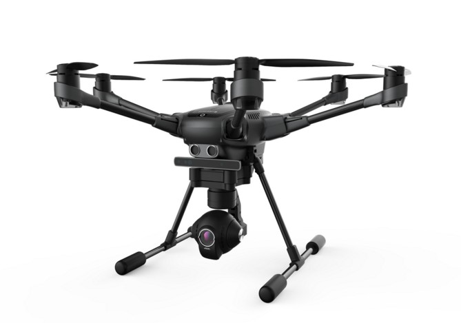 Der Typhoon H ist als Hexakopter (6 Arme mit 6 Motoren) ausgelegt und bietet dadurch ein Höchstmass an Sicherheit, da 5 Motoren für einen sicheren Flug ausreichen. Durch diese Auslegung wird ein sehr hohes Mass an Stabilität und Flugruhe erreicht und macht den Typhoon H dadurch zu einer der besten Plattformen für Hobbypiloten, Fotographen und Videofilmer am Markt. Die Plattform ist zudem mit einem Einziehfahrwerk ausgestattet und bietet so ein ungestörtes 360° Sichtfeld für die Kamera. Für den Transport sind die Arme klappbar und die Luftschrauben durch ein Quicklock leicht zu montieren. Die Gesamtflugzeit bei gleichzeitiger Aufnahme eines Videos in 4K beträgt etwa 22 Minuten.