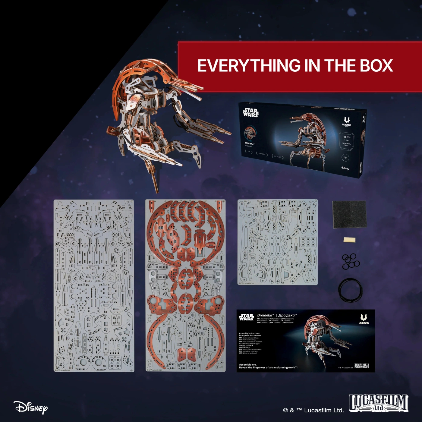 Baue den ikonischen Droideka ein 3D-Holzpuzzle des wandelbaren Zerstörer-Droiden aus Star Wars™. Lässt sich zu einer Kugel zusammenfalten und springt in den Kampfmodus!