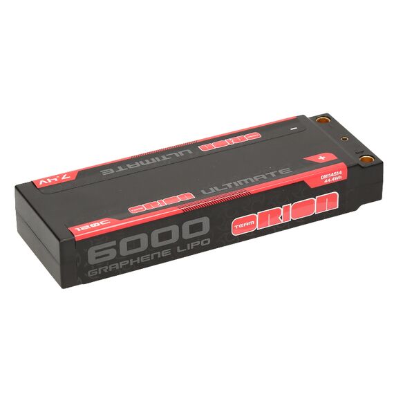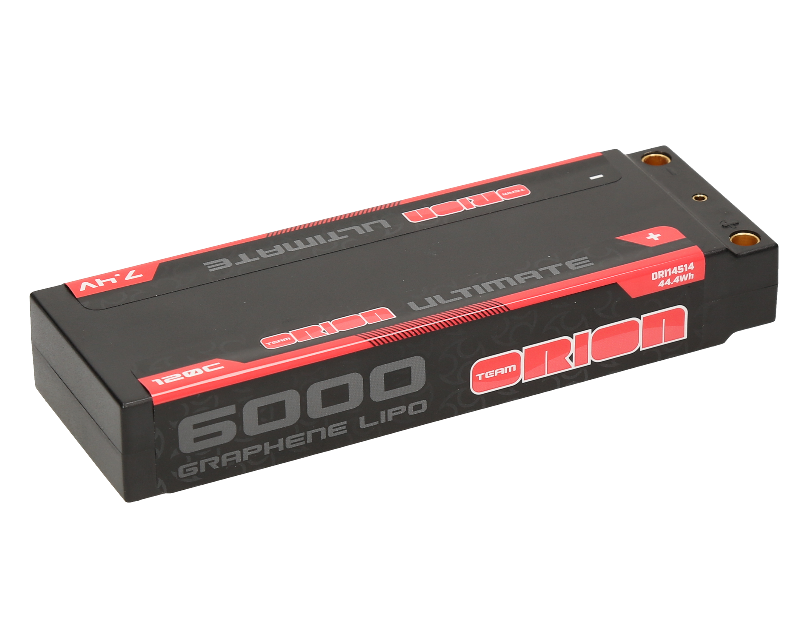 -Team Orion – reigning 2wd and 4wd World Champions – proudly announce the new Ultimate Graphene LiPo competition batteries. The new Ultimate Graphene LiPo batteries represent the latest development in lithium battery technology, offering new levels of performance. Our engineers have worked closely with our team drivers to fine tune the performance of our Graphene LiPo batteries to make sure that the performance is optimal, no matter the track conditions. Thanks to the ultra low internal resistance and improved capacity, the new Graphene LiPo cells supply stable power, from the start to the end of the race. The Ultimate Graphene Lipo range is composed of two families of batteries, the Ultimate Graphene LiPo (7.4V) and the Ultimate Graphene LiPo HV (7.6V). The new batteries are available in the all the most popular formats, shorty, small shorty, stick and 4S block for 1/8.