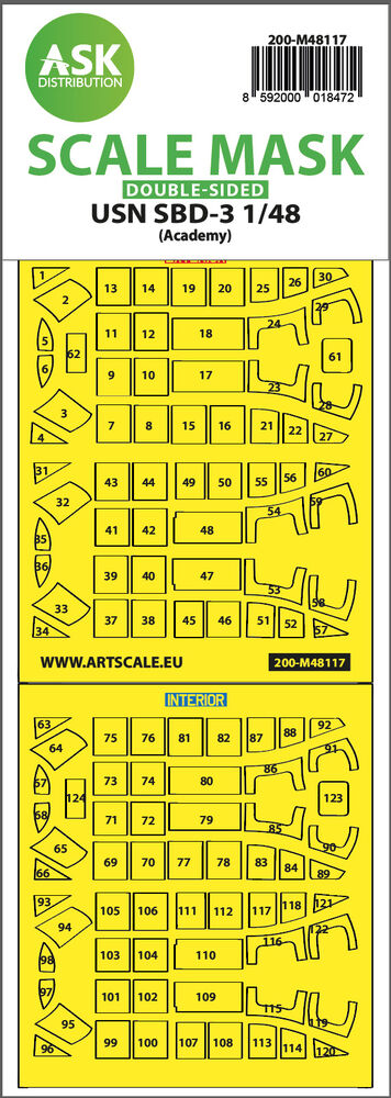 USN SBD-3 double-sided express mask, self-adhesive and pre-cutted for Academy