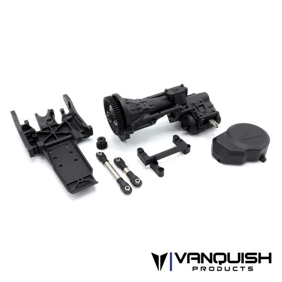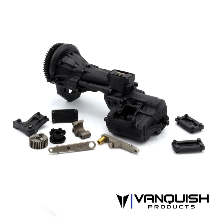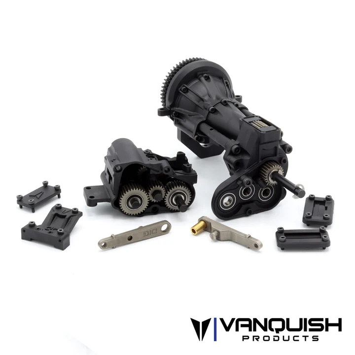 Das VFD Twin-Getriebe (zum Patent angemeldet) ist eine Weiterentwicklung des ursprünglichen VFD. Es vereint die bewährte Balance aus Leistung, maßstabsgetreuer Optik und Robustheit und bietet zusätzlich branchenweit erstmalige Funktionen. Das VFD Twin verfügt über einen zuschaltbaren Overdrive und einen Hinterachs-Gang. Das Verteilergetriebe mit zwei Schaltvorgängen nutzt austauschbare Lagerplatten, einen Messingdrehpunkt für die Schaltarme und Schaltschienen aus Chrom-Molybdän-Stahl. Dank des bewährten Hurtz-Gangs ist das Schalten des VFD Twin sanft und zuverlässig. Die Overdrive-Umschaltung von 6,5 % auf 46 % ermöglicht eine sofortige Anpassung der Fahreigenschaften und der Einstellmöglichkeiten. Das VFD Twin-Getriebe positioniert den Motor so weit vorne und tief wie möglich. Kompatibel mit 540er Bürsten- und bürstenlosen Motoren*.