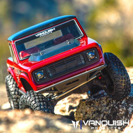 Vanquish Products VS4-10 Chassis is made to provide you with a balance scale looks and unhindered performance. The steel C-channel design provides scale detail, molded front and rear cross members fill the chassis rails in the highest stress locations for ultimate strength and provide features like dual servo mounts, winch line routing, and a fuel cell. The molded rock sliders come with a replaceable outer portion that perfectly fits the Origin Halfcab body. The VS4-10 chassis is developed to work with the included Vanquish Products VFD Spec transmission. The panhard mount on the chassis is made from machined aluminum to withstand the impacts of severe trail conditions. Molded shock towers capture the top of the 80mm Incision Scale Shocks in double shear for maximum support. The aluminum battery and electronics trays provide multiple locations for battery and electronics placement. Full width molded front and rear bumpers increase approach and departure angles and allow for flexibility during impacts on the trail.