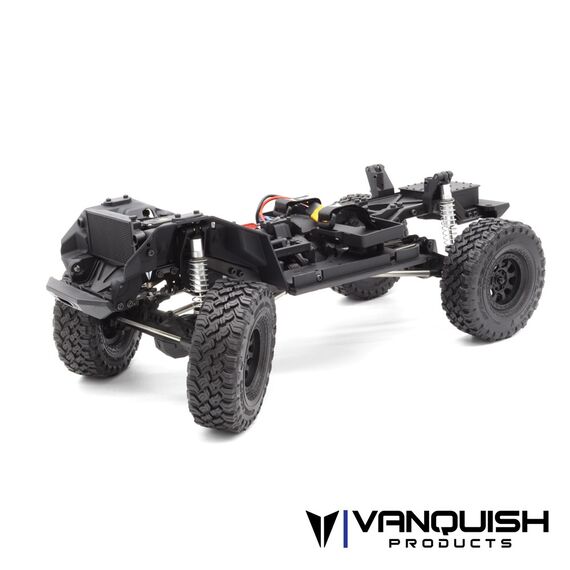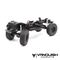 VS4-10 Chassis is made to provide you with a balance of scale looks and unhindered performance. The steel C-channel design provides scale detail, molded front and rear cross members fill the chassis rails in the highest stress locations for ultimate strength and provide features like dual servo mounts, winch line routing, and a fuel cell. The molded rock sliders come with a replaceable tapered outer portion that perfectly fits the Fordyce body. The panhard mount on the chassis is made from machined aluminum to withstand the impacts of severe trail conditions. Molded shock towers capture the top of the 90mm Incision S8E Shocks in double shear for maximum support. Narrow molded front and rear bumpers maximize clearances while improving approach and departure angles.