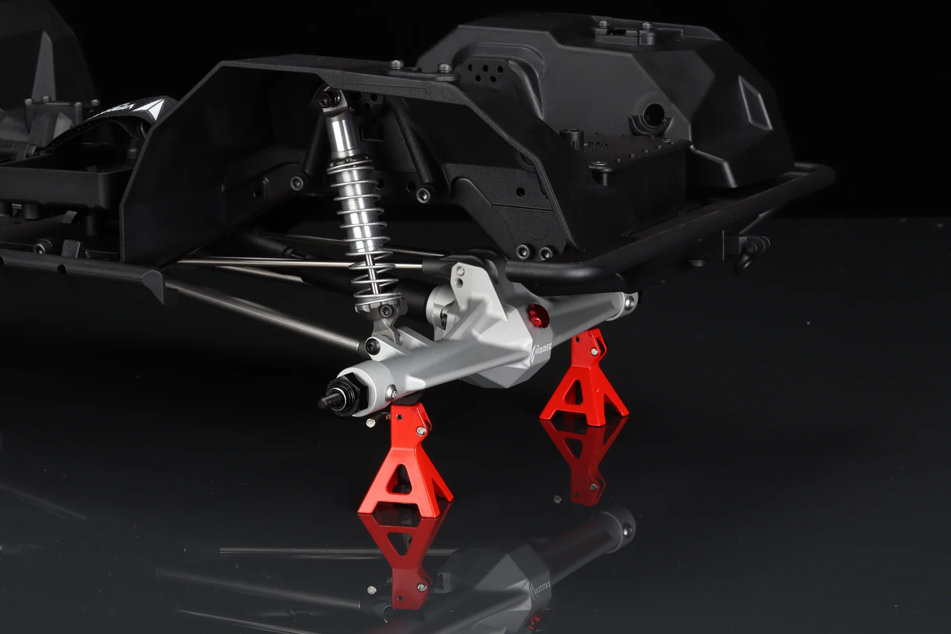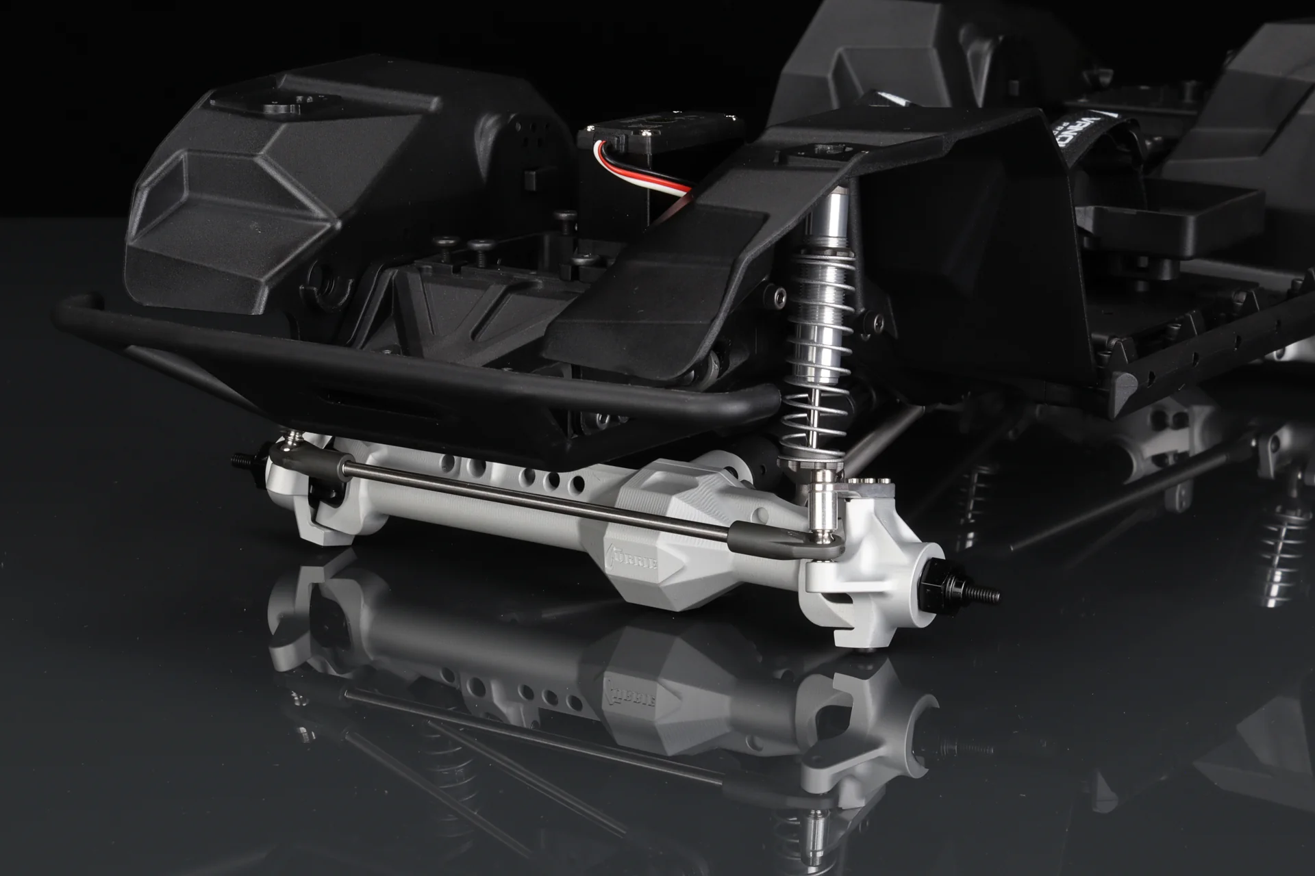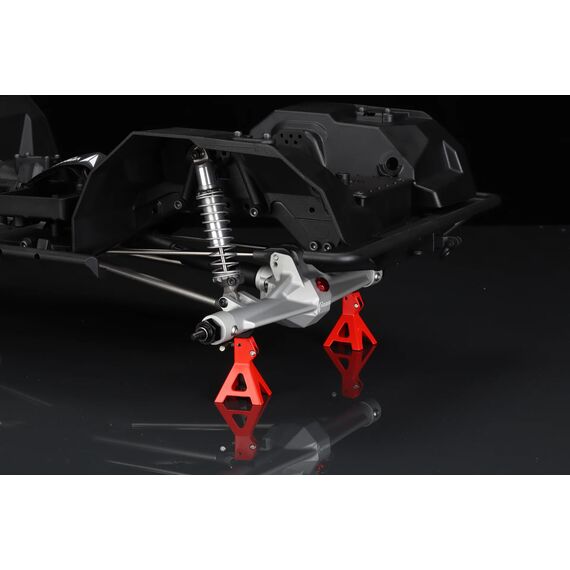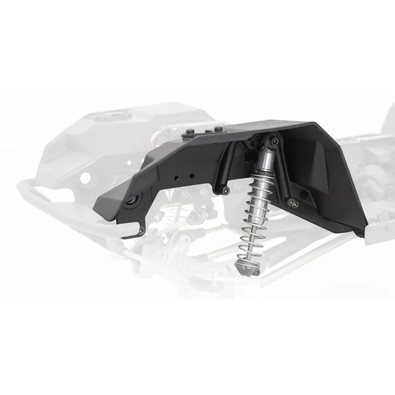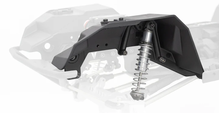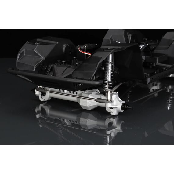 Diese Querträger integrieren Funktionen wie doppelte Servohalterungen, Seilführung für eine Winde und einen Kraftstofftank. Die geformten Rockslider verfügen über austauschbare Außenteile. Die Panhard-Halterung am Chassis besteht aus gefrästem Aluminium und hält selbst härtesten Trail-Bedingungen stand.