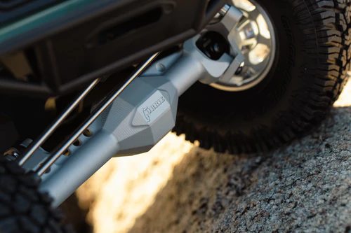 Die gefrästen F10-Starrachsen aus Aluminium profitieren von der langjährigen Erfahrung von Vanquish Products in der Entwicklung hochwertiger Aluminiumachsen. Hergestellt in den USA aus US-Aluminium, verfügen die F10-Aluminium-Starrachsen über ein extrem steifes Design mit integrierter Achsverstrebung, die beide Achsenden verbindet, sowie überdimensionierte C-Hubs mit integrierter Panhard-Aufnahme.